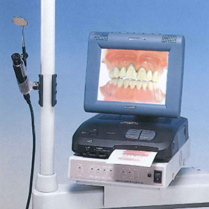 スリムで軽量な画面と画像装置本体はユニットアーム取付タイプのため、診療室のスペースをとらずに使用できる。