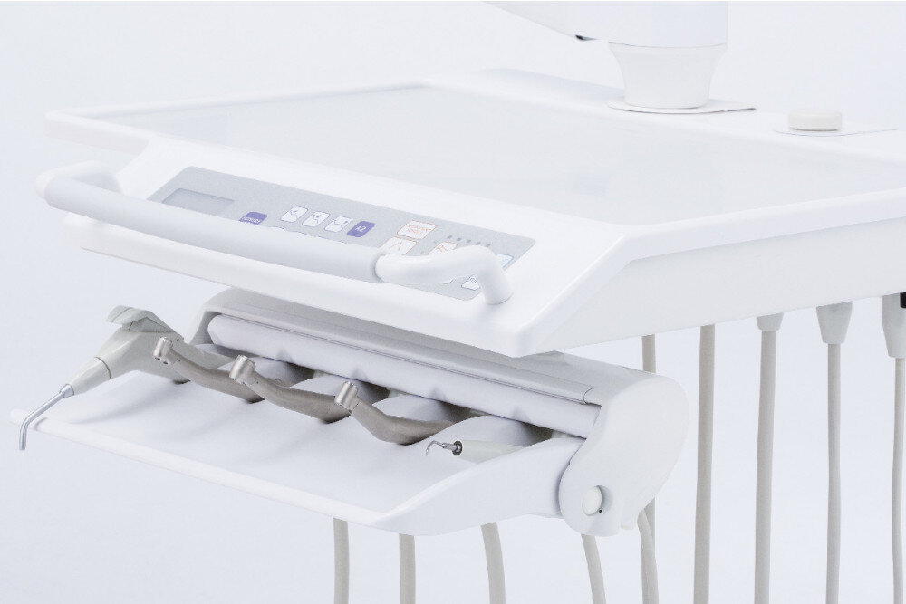 折り畳み式のアシスタントホルダーでアシスタントエリアを広く確保でき、ツーハンド診療・フォーハンド診療どちらも行いやすい設計です。