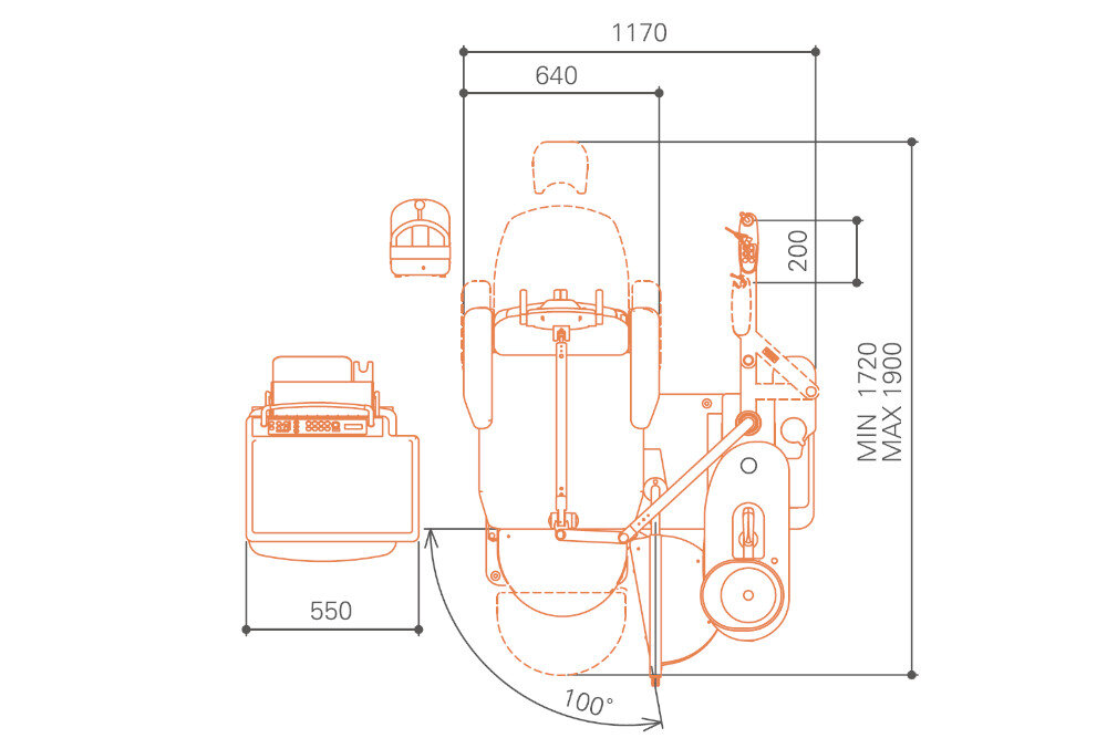 | チェア | 最低位:450mm/最高位:730mm(ストローク:280mm) L型タイプ(チルト機構付) コンフォートシート 手動回転180° サポートアーム付 ケアモード付 |