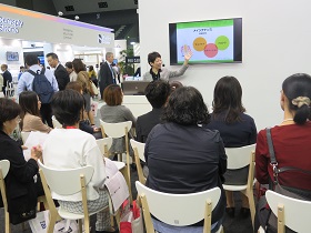 ブース内ではお客様の関心に合わせ、コーナー別に商品を展示しました。